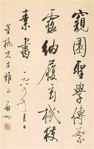 在“金耀基八十書法展”上,著名學者余英時托董橋轉(zhuǎn)達對金耀基書法的評價,同樣意味深長。余英時表示,他不愿將書法從金耀基的“人生中完全孤立出來”。藝術(shù)精神貫穿在金耀基的全部生命之中,書法不過是其中的一環(huán)而已?!笆聦嵣?,不僅他以‘語絲’為名的所有散文是藝術(shù)的化身,而且他在百萬言的學術(shù)論述中,也時時流露出藝術(shù)的光芒?!庇嘤r最后點睛一道:“我在室中走動,偶然抬頭看到他贈我的條幅,但我所見到的卻不是書法,而是書法家本人?!钡拇_,見字如見人,人所見的實際是字中所涵養(yǎng)的人格。