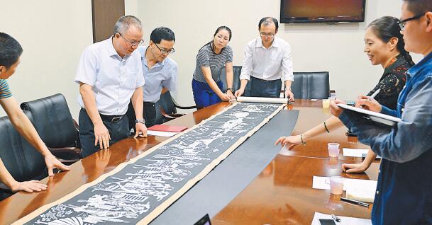 現場展示剪紙藝術作品《深圳上河圖》(局部)。