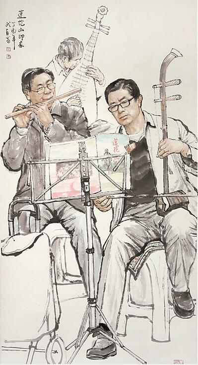 蓮花山腳下,幾位老年人聚在一起,拉二胡、吹笛等,秀出“十八般武藝”;書(shū)屋一角,一群孩子席地而坐,捧著心愛(ài)的讀物專(zhuān)心致志地看起來(lái)……此次國(guó)畫(huà)展以中國(guó)畫(huà)的形式表達(dá)了畫(huà)者對(duì)福田、對(duì)祖國(guó)的深情厚誼和對(duì)美好生活的向往熱愛(ài),也展現(xiàn)了廣大老年人在福田區(qū)生活的良好精神文化生活狀態(tài)。園嶺街道老年協(xié)會(huì)的朱女士觀展后說(shuō),畫(huà)展給轄區(qū)長(zhǎng)者搭建了充分發(fā)揮自己才藝的平臺(tái),展現(xiàn)出轄區(qū)老年人充實(shí)愉快的晚年生活;同時(shí),令老年人減輕對(duì)子女的依賴(lài),活出獨(dú)立的生活品味。