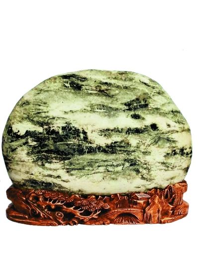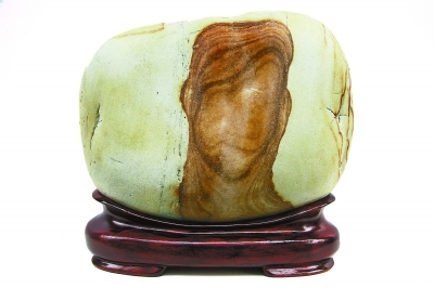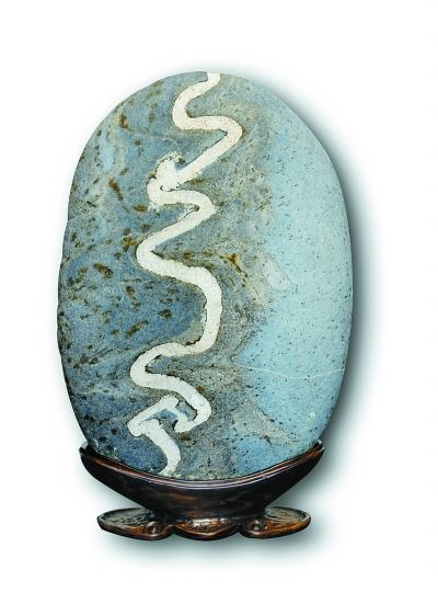 金沙江卵石的種類繁多,主要有芙蓉石、墨畫石、油畫石、龜紋石、螺鈿石、松花石、丹彩石、牧羊石、金剛石、燙畫石、彩蠟石、金沙彩等。這些石頭到底有多好,水富縣的石友們總結(jié)出十大美——天然美、色彩美、線條美、石質(zhì)美、形象美、裝飾美、朦朧美、含蓄美、空靈美、意境美。如果沒有江水長(zhǎng)年累月的沖刷和搬運(yùn),也就不會(huì)形成這么多美麗的石頭。水富縣奇石辦多次組織當(dāng)?shù)氐氖虆⒓尤珖梗瑤啄陙?,捧回特等?jiǎng)一枚,金獎(jiǎng)185枚,銀獎(jiǎng)420枚,優(yōu)秀獎(jiǎng)600枚。好像是在夸自己,曹會(huì)長(zhǎng)說得有些臉紅,用手拍打起石頭來。在一旁的老伴兒說,老曹一高興就愛拍石頭,說石頭能聽懂他的話。這倒讓我想起著名美學(xué)家王朝聞贊美奇石的一首詩:“石居人外,人在石中。相擊相和,創(chuàng)造對(duì)方?!?/p>