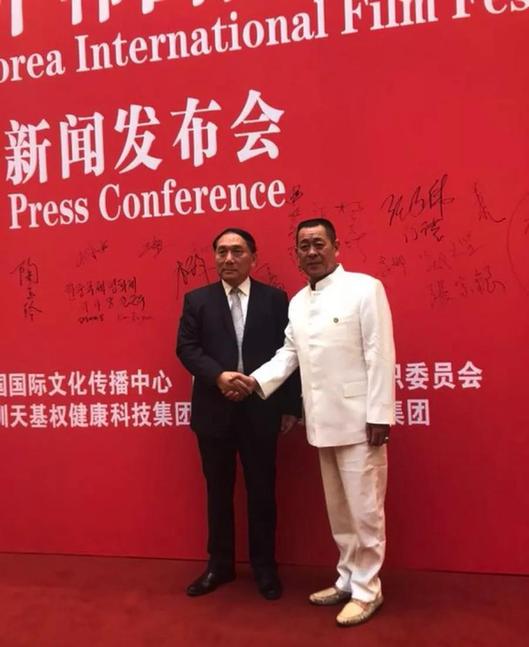 天基權(quán)董事長(zhǎng)/總裁釋延豹與中韓國(guó)際電影節(jié)執(zhí)行委員長(zhǎng)兼評(píng)審委員長(zhǎng)張國(guó)立合影