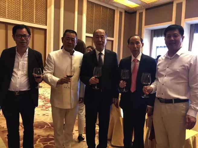 天基權(quán)董事長(zhǎng)/總裁釋延豹與香港影視紅星葉璇、中國(guó)影星王寶強(qiáng)合影