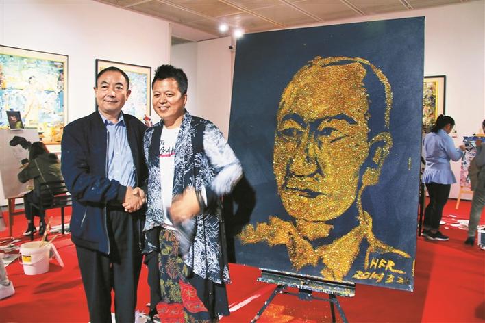 當(dāng)天,全至科技創(chuàng)新園內(nèi)的數(shù)十名員工在“演畫”創(chuàng)始人黃鳳榮的帶領(lǐng)下體驗了拼貼創(chuàng)作的樂趣?,F(xiàn)場黃鳳榮展示了潑粉、拼貼等多種演畫手法。他的“瞬時金粉畫”因其戲劇性的藝術(shù)效果令現(xiàn)場掌聲雷動。