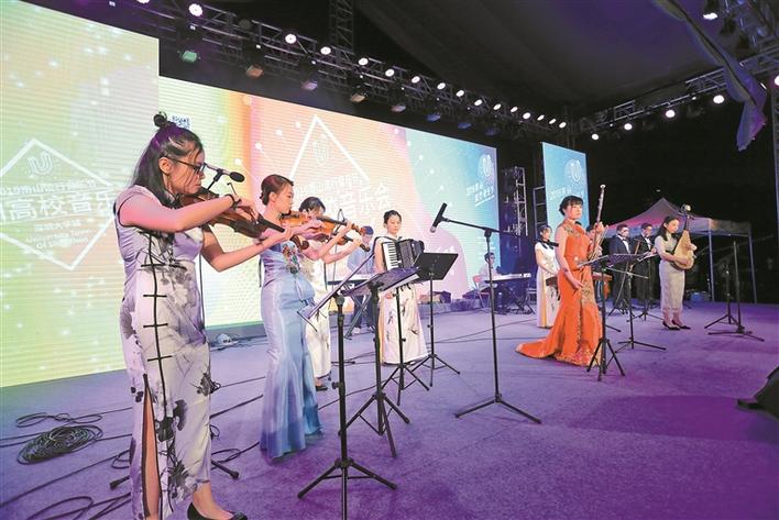 ▲深圳大學(xué)城藝術(shù)團(tuán)表演原創(chuàng)器樂合奏《驚蟄》。