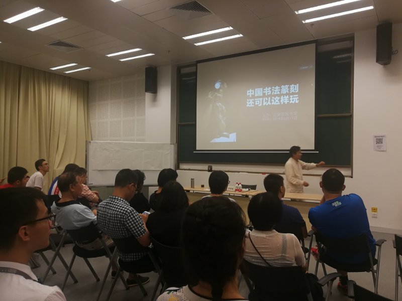 在2個小時的講座中,鐘國康妙語連珠,用生動幽默的語言將博大精深的書法篆刻文化表現(xiàn)得淋漓盡致,講座現(xiàn)場掌聲連連。鐘國康認為,書法篆刻之術,只有筆性、墨性、石性、紙性、心性,全方位嚴謹,筆力勁駿,心手相應,技藝熟練,才能做到庖丁解牛,勢如破竹,可進可退,正可謂“惟習之至熟,自可心手相應”。他還現(xiàn)場潑墨揮毫,演示篆書的寫法,詳細講解并現(xiàn)場演示了篆刻的方法,重點分享自己在單刀法和雙刀法上的獨特見解。單刀法要“有多狠刻多狠,有多猛刻多猛,有多深刻多深,有多長線條刻多長線條”,而雙刀法即在“單刀之回馬槍重刻一遍相反之單刀法”。一些幸運的書法、篆刻愛好者還通過搶答的方式,獲贈書法篆刻作品。(通訊員 孫善文)