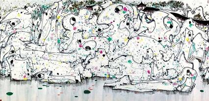 描繪蘇州四大園林之一獅子林風景的獅子林題材是吳冠中生平最重要的藝術創(chuàng)作之一,被認為是代表吳冠中藝術生涯承前啟后的重要杰作,囊括了他對西方與東方、傳統(tǒng)與現(xiàn)代、物質與精神所有的理解和闡釋。從《獅子林》開始,吳冠中以點、線、面表現(xiàn)山川風景的個人畫風得以形成。此幅《獅子林》是吳冠中1988年創(chuàng)作的。2011年這幅作品就曾于保利春拍拍出1.15億元,引起不小的轟動。另一幅更為經(jīng)典的《獅子林》收藏在中華藝術宮,是吳冠中1983年的作品。