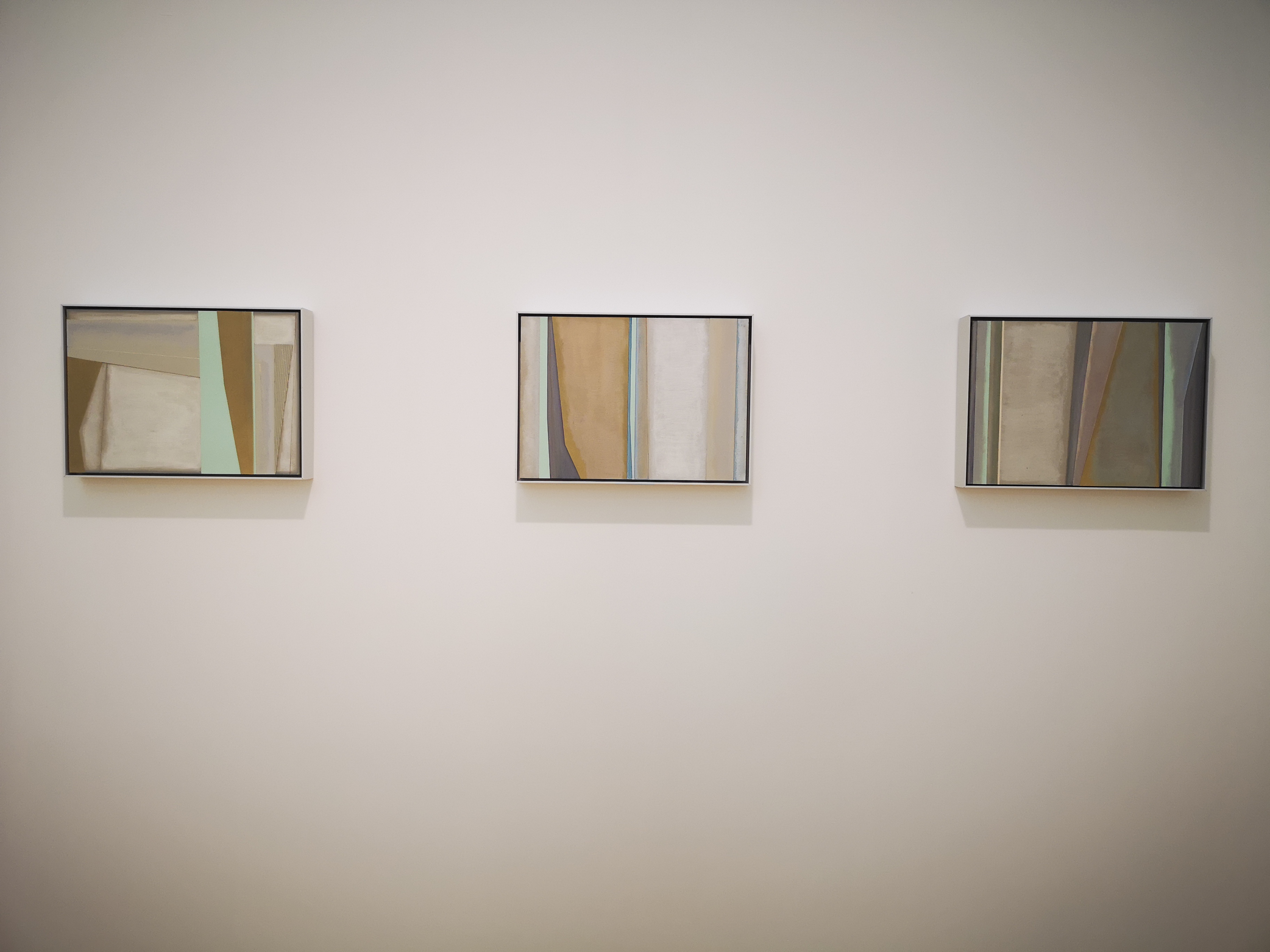 自2013年王豪開(kāi)始以水泥作為個(gè)人創(chuàng)作媒介以來(lái),三個(gè)系列“寂”、“樸”、“遠(yuǎn)”并行展開(kāi)。“寂”和“樸”強(qiáng)調(diào)水泥作品的靜態(tài)特征,不論是單件作品還是多件組合作品,在水泥材料的細(xì)微變化與色塊搭配上,力求傳達(dá)出一種寧?kù)o、樸拙的整體氣息;“樸”系列在形式上更為豐富,不僅嘗試使用斜線、三角形乃至圓形,還探索富于中國(guó)古典韻味的形式表達(dá);“遠(yuǎn)”系列的名稱則來(lái)源于中國(guó)傳統(tǒng)山水繪畫(huà)所特有的透視技法“三遠(yuǎn)”概念,這系列作品意圖通過(guò)畫(huà)面的動(dòng)態(tài)表現(xiàn)打破二維空間限定,拓展平面繪畫(huà)的深度與廣度,從美學(xué)意境上與高遠(yuǎn)、深遠(yuǎn)、平遠(yuǎn)相融合。