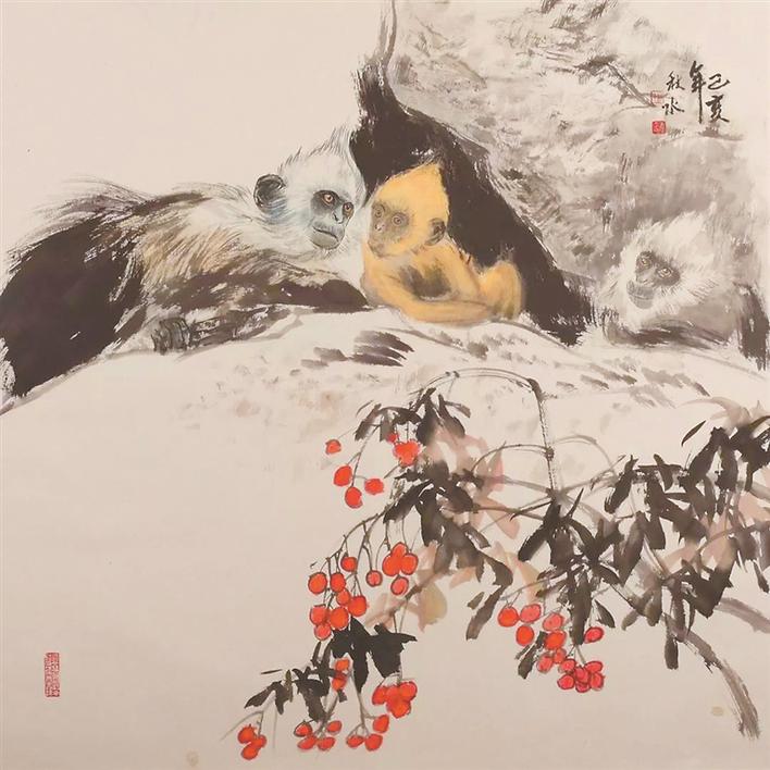走進(jìn)展廳,觀眾可以發(fā)現(xiàn),白頭葉猴毫無(wú)疑問(wèn)是此次展覽的主角。它們?cè)?00多萬(wàn)年的自然演化中已經(jīng)與廣西崇左的喀斯特石山結(jié)下了不解之緣。如今這一物種也處于瀕臨消失的危境。此次展覽以“我們”為題,從自然生態(tài)、環(huán)境保護(hù)以及社會(huì)發(fā)展角度展現(xiàn)出秋水作為一名藝術(shù)創(chuàng)作者的溫情和關(guān)懷。通過(guò)畫(huà)作,他也呼吁人們加強(qiáng)環(huán)保和動(dòng)物保護(hù)意識(shí)。