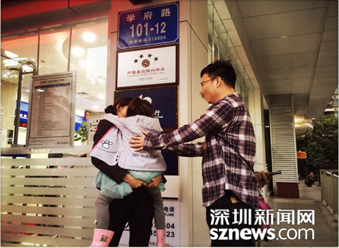 經(jīng)了解,女孩小名西西,是附近教育幼兒園的小朋友。沿著這一線索,交行相關(guān)人員立即聯(lián)系了該幼兒園的工作人員,并查到了西西監(jiān)護(hù)人的聯(lián)系方式,立刻撥通了西西媽媽的電話。簡單說明情況后,小代將手機(jī)遞給西西,在聽到媽媽聲音的那一刻,西西緊繃的情緒終于爆發(fā),委屈的大哭起來。一個多小時后,西西的爸爸匆匆趕到交行學(xué)府支行,看到孩子回到爸爸懷抱,交行員工懸著的心終于放下。