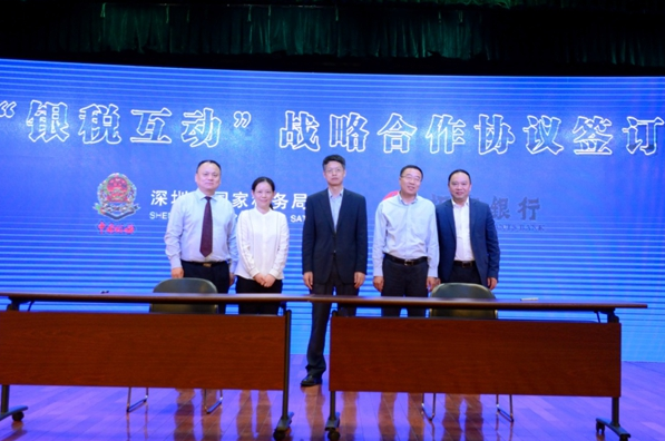 2018年3月28日下午,深圳市國(guó)稅局(簡(jiǎn)稱(chēng)“深圳國(guó)稅”)在深圳國(guó)稅大樓五樓舉行“銀稅互動(dòng)”合作簽約暨“金融超市”項(xiàng)目啟動(dòng)儀式,招商銀行深圳分行作為首批合作金融機(jī)構(gòu)在現(xiàn)場(chǎng)與深圳國(guó)稅簽署了“銀稅互動(dòng)”戰(zhàn)略合作協(xié)議。