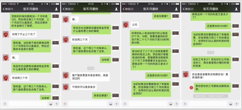 實際償還數(shù)與當初協(xié)商數(shù)不符,何先生聯(lián)系到當初為自己辦理貸款的捷信業(yè)務(wù)員,但是對方稱自己提醒過何先生有服務(wù)費,并要求何先生去捷信總公司調(diào)取錄音,但是當何先生提出調(diào)取錄音時,對方卻將他微信拉黑了。