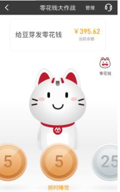 作為存錢罐,“小招喵”萌萌的外形招人喜歡,而當(dāng)把智能小屏幕放入表帶,它又變身真正的兒童手表時刻陪伴孩子。家長登錄招商銀行APP“零花錢大作戰(zhàn)”功能,綁定小孩的銀行卡和儲蓄罐后,動動手指就能給孩子“發(fā)送”零花錢,與孩子實時互動,整個零花錢發(fā)送體驗非常有趣。家長還可以和孩子做“約定”,當(dāng)孩子完成某項約定任務(wù),進(jìn)行轉(zhuǎn)賬。而小朋友可以在自己的“小招喵”存錢罐上,可以看到零花錢金幣落下過程,還可以通過存錢罐去查詢零花錢余額。