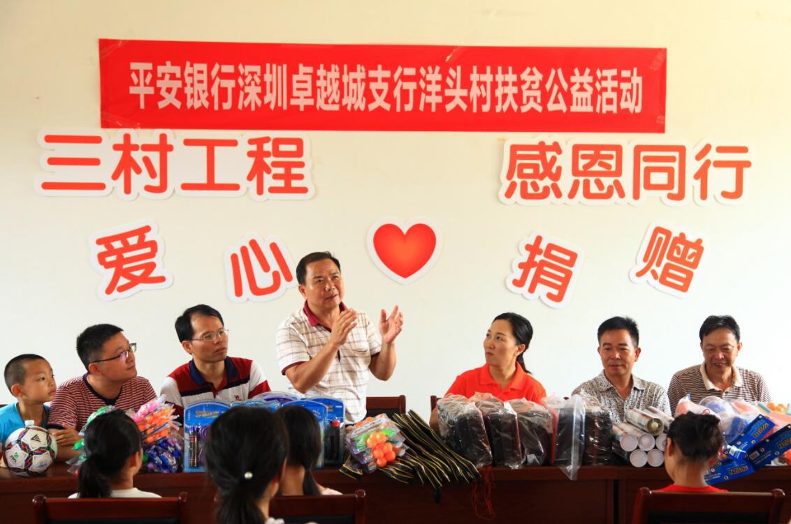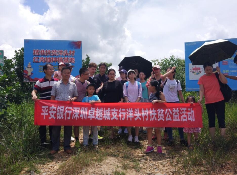 深圳新聞網(wǎng)訊 8月19日上午,為響應(yīng)平安集團“三村工程”建設(shè)和平安銀行總、分行黨委關(guān)于扶貧工作的號召,踐行社會責(zé)任,平安銀行深圳卓越城支行客戶、員工一行25人前往該行對口扶貧村紫金縣龍窩鎮(zhèn)洋頭村開展了扶貧公益活動。