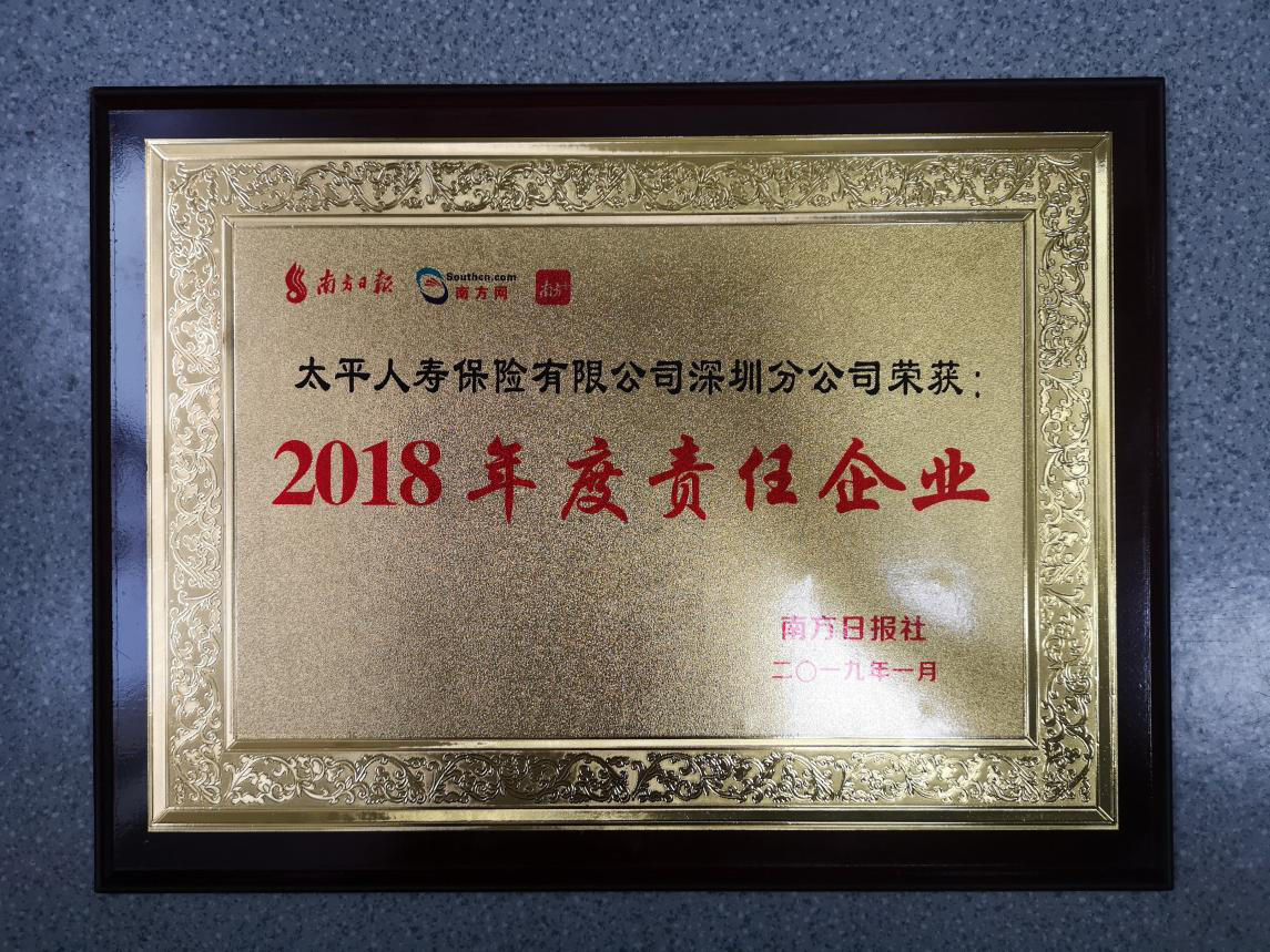 深圳新聞網(wǎng)訊 1月14日,由南方報(bào)業(yè)傳媒集團(tuán)主辦,深圳市慈善事業(yè)聯(lián)合會(huì)、深圳市慈善會(huì)、深圳市社會(huì)公益基金會(huì)、同心俱樂(lè)部、深圳市保險(xiǎn)同業(yè)公會(huì)聯(lián)合主辦,南方日?qǐng)?bào)珠三角全媒體新聞部承辦的2019南方日?qǐng)?bào)深圳企業(yè)社會(huì)責(zé)任峰會(huì)在深圳召開。太平人壽深圳分公司從百余家企業(yè)中脫穎而出,榮獲“2018年度責(zé)任企業(yè)”榮譽(yù)獎(jiǎng)項(xiàng)。