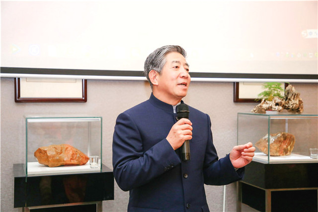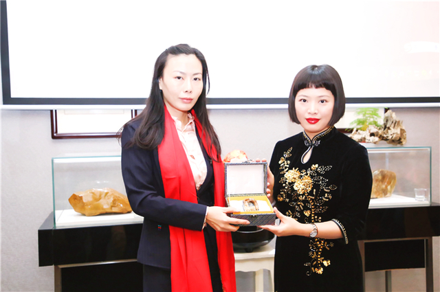 自古書法印章不分家,作品必須蓋印才算完整。本次活動場地提供田黃博物館、希雍天石董事長繆建生為到場嘉賓和校友,受邀分享田黃石科普知識,介紹歷經(jīng)1.8億萬年形成的田黃石種類及特點。 歡聚活動上,田黃博物館特別挑選了一枚“溫、潤、細、膩、凝、潔” 、印面方正碩大,雙龍雕刻立體,栩栩如生的昌化田黃貫斗雙龍印璽,捐贈給文學社。 收到如此珍貴的禮物,求是文學社秘書長樓蓉表示:非常感謝田黃博物館的支持與厚禮,后期將委托機構(gòu)對這塊印石義拍或義賣,所得將以求是文學社和田黃博物館名義,捐贈給公益項目,會讓這一珍貴的禮物,發(fā)揮更多的社會價值。