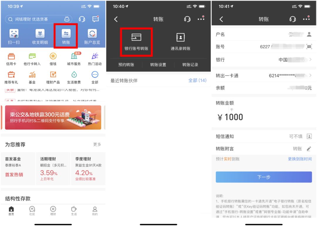 打開招商銀行APP,在首頁點(diǎn)擊“轉(zhuǎn)賬”進(jìn)入轉(zhuǎn)賬頁面。點(diǎn)擊“銀行賬號轉(zhuǎn)賬”,根據(jù)提示完成轉(zhuǎn)賬即可完成還款,還可以為親友信用卡免費(fèi)還款。