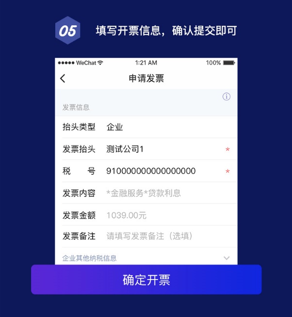 具體功能包括客戶在線查詢貸款結(jié)息、貼現(xiàn)利息交易流水,申請(qǐng)單筆開票、合并開票,通過企業(yè)APP或郵箱實(shí)時(shí)領(lǐng)取發(fā)票,永久存儲(chǔ),無需前往網(wǎng)點(diǎn)柜臺(tái)申領(lǐng)紙質(zhì)發(fā)票,省時(shí)省力!