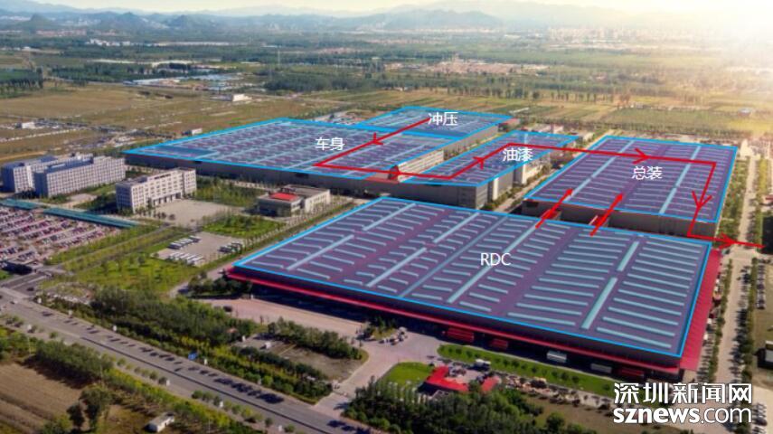 車身車間總占地面積9.9萬㎡,采用互聯(lián)機(jī)器人、柔性NC定位系統(tǒng)、柔性夾具切換系統(tǒng)、自動(dòng)化輸送系統(tǒng),標(biāo)準(zhǔn)化工藝體系、三層環(huán)網(wǎng)智能管理系統(tǒng)、國(guó)際安全標(biāo)準(zhǔn),主線自動(dòng)化率95%;采用柔性智能生產(chǎn)線,在同一條生產(chǎn)線可完成8個(gè)不同的車型無節(jié)拍損失自動(dòng)切換和混線生產(chǎn)。