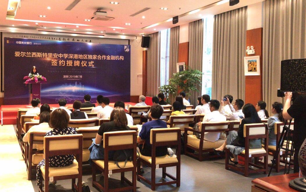 中國光大銀行深圳分行與愛爾蘭頂級(jí)私立男校簽署獨(dú)家合作授牌儀式現(xiàn)場(chǎng)