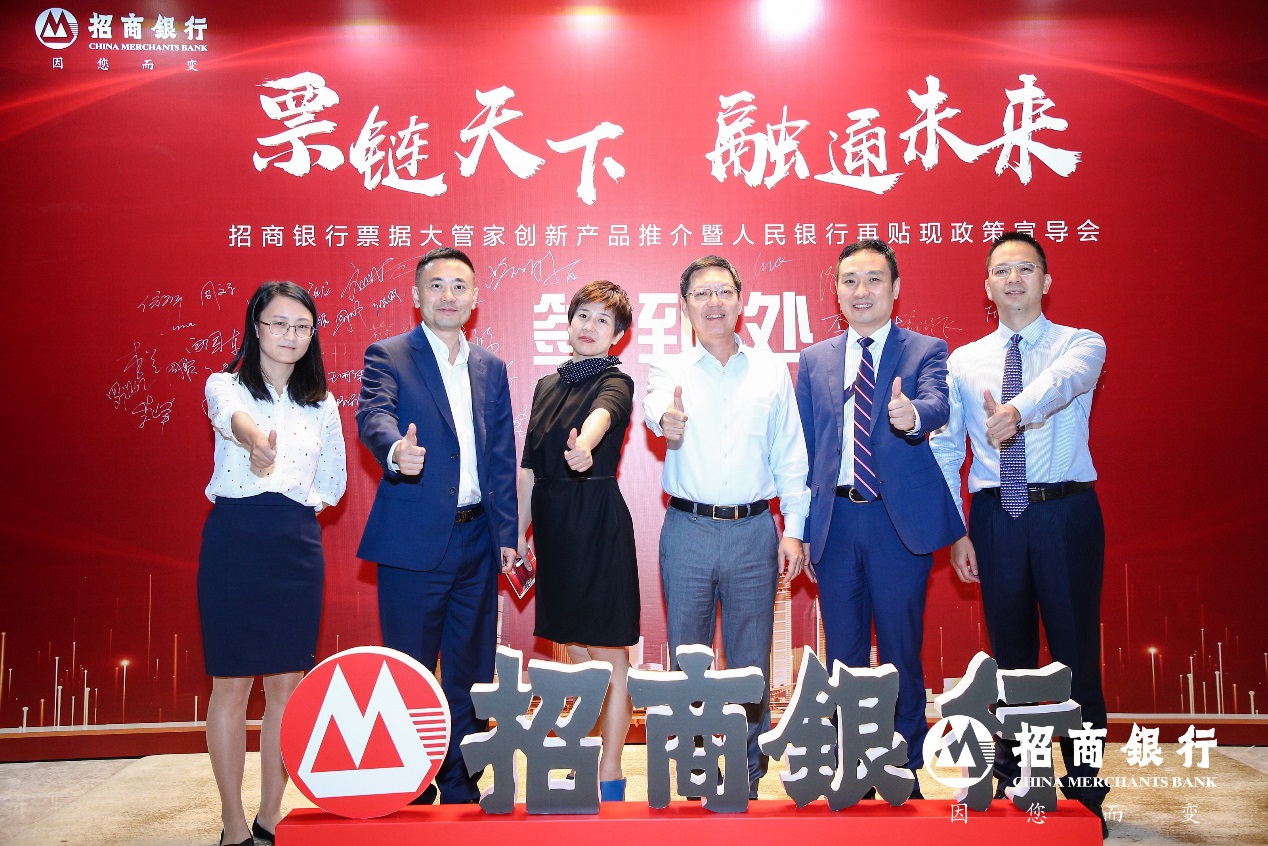 2019年11月15日,招商銀行攜手中國(guó)人民銀行深圳市中心支行在深圳成功舉辦“2019招商銀行票據(jù)大管家創(chuàng)新產(chǎn)品推介會(huì)暨人民銀行再貼現(xiàn)政策宣導(dǎo)會(huì)”。本次推介會(huì)以“票鏈天下?融通未來”為主題,來自華為、TCL、富士康、中興通訊、創(chuàng)維、深圳水務(wù)等100余家企業(yè)代表出席,共同探討票交所時(shí)代下票據(jù)管理、融資以及創(chuàng)新產(chǎn)品實(shí)踐。中國(guó)人民銀行深圳市中心支行貨幣信貸管理處出席推介會(huì),隆重介紹即將推出的人民銀行普惠金融貼現(xiàn)政策——“商票通”。招商銀行總行票據(jù)業(yè)務(wù)部黃斌總經(jīng)理、招商銀行總行研究院譚海鳴副院長(zhǎng)、招商銀行深圳分行曾令武行長(zhǎng)助理及招商銀行深圳分行票據(jù)業(yè)務(wù)部張衍松總經(jīng)理共同參與了此次活動(dòng)。
