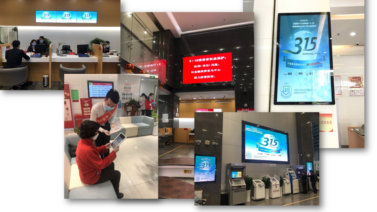 受疫情影響,在今年的3.15宣傳教育活動期間,招商銀行深圳分行因時制宜,充分借助互聯(lián)網(wǎng)媒體渠道,加大線上宣教推廣力度。其中,原創(chuàng)漫畫、視頻等已在中國銀行業(yè)協(xié)會、中國人民銀行深圳市中心支行、招商銀行總行以及信用卡中心的官方微信、微博等各大平臺競相上線,獲得了消費者的廣泛好評。同時,在手機銀行 App網(wǎng)點線上店開辟“消保有招”3.15專欄,不斷開創(chuàng)新的宣傳場景和消費者觸點。結(jié)合電臺廣播交通頻率1062、新聞898、音樂971等傳統(tǒng)媒體平臺在早晚高峰期循環(huán)播放活動主題,以短平快、覆蓋廣的方式大力推動金融宣教工作,進一步擴充宣傳渠道和受眾面。同時,以營業(yè)廳為陣地,通過跑屏、電子海報機、電視等多媒體設(shè)備播放宣傳素材,多種渠道共同推廣打造立體宣教格局,覆蓋更多消費者群體進一步增強影響力。