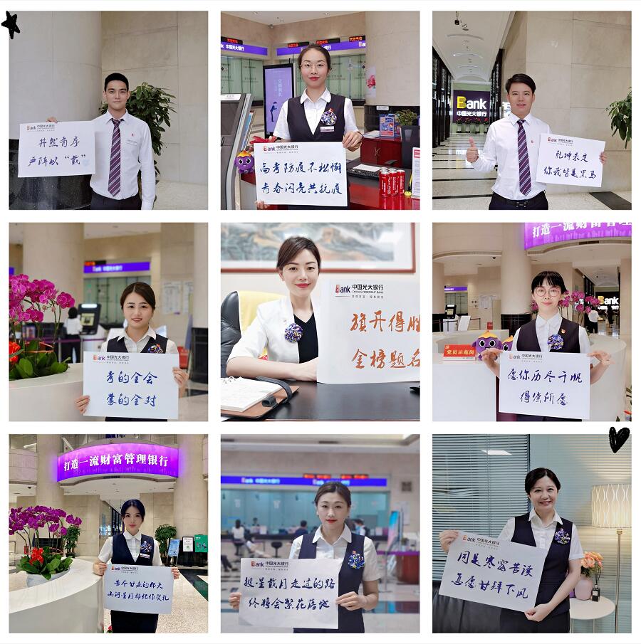 除了在網(wǎng)點提供服務(wù),光大銀行深圳分行還組織員工通過微信朋友圈及周邊宣傳等方式,為高考學子加油打氣,祝福所有的高考學子旗開得勝,金榜題名。這種主動擴大服務(wù)范圍、為高考護航的溫暖點滴,是光大銀行深圳分行貫徹落實陽光服務(wù),切實履行金融機構(gòu)社會責任的一個縮影。