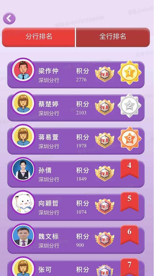 此次活動(dòng)取得良好效果,有效提高員工消費(fèi)者權(quán)益保護(hù)意識(shí)與能力。滄海橫流顯砥柱,萬(wàn)山磅礴看主峰。深圳分行熙龍灣支行梁作仲、海濱支行蔡楚婷、華強(qiáng)支行蔣易萱、寶城支行孫倩、陽(yáng)光服務(wù)(消保)辦公室向穎哲、民塘支行魏文標(biāo)、寶城支行張可、華強(qiáng)支行蔡靜嫻、寶新支行郭曉冀、民塘支行彭慧妮的最終比賽戰(zhàn)績(jī)排名分行前十位置。分行陽(yáng)光服務(wù)(消保)辦公室、零售金融部、民塘支行、南海大道支行、寶新支行、八卦嶺支行、筍崗支行、水貝支行、南灣支行、羅湖支行、布吉支行、福田支行、中心區(qū)支行實(shí)現(xiàn)全員參與比賽,表現(xiàn)也十分突出。