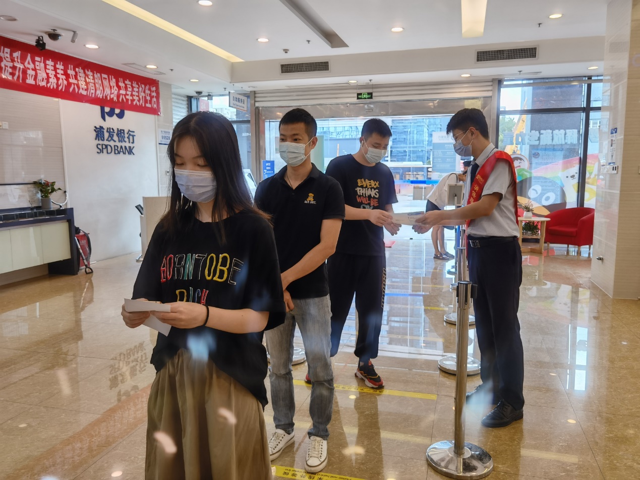 近期,全國疫情防控形勢依然嚴峻,浦發(fā)銀行深圳科苑按照上級要求,做好防疫相關工作,在每一位市民進入網(wǎng)點之前,均安排專人負責測量體溫,引導客戶出示行程碼和健康碼并要求戴好口罩。為提醒市民防疫,該網(wǎng)點還提供了免洗洗手液、一次性口罩等防疫物品。在紀念幣兌換排隊等候區(qū),該網(wǎng)點設立專屬通道,張貼一米等候線,引導市民有序完成兌換,避免人群扎堆?,F(xiàn)場秩序井然,多位市民表示在節(jié)假日期間拿到紀念幣非常滿意。