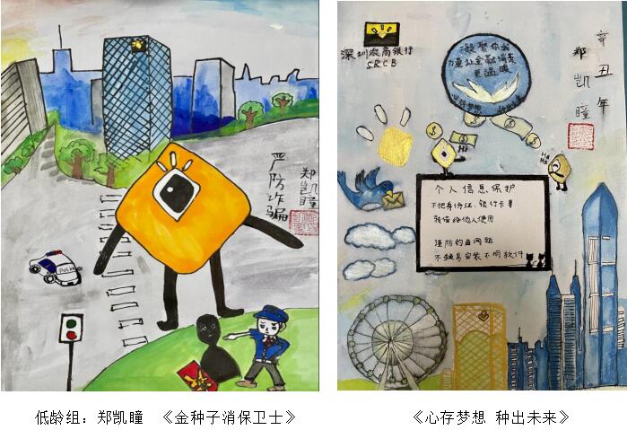 本屆“我是小小繪畫家”消保主題繪畫大賽,圍繞“孩子眼中的消保世界”題材展開,體現(xiàn)孩子對消費者權益保護、金融風險防范、自我保護能力提升等方面的認識,通過畫筆,描繪孩子眼中的金融消保工作。同時,也是積極落實中國人民銀行深圳市中心支行、深圳銀保監(jiān)局、深圳銀促會組織開展的“金融知識普及月”“金融聯(lián)合教育宣傳月”活動號召,聚焦青少年人群,開展金融知識普及宣教活動。