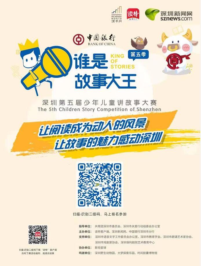據(jù)了解,“讓閱讀成為動(dòng)人的風(fēng)景,讓故事的魅力感動(dòng)深圳”是“誰(shuí)是故事大王”活動(dòng)的口號(hào)與主旋律,中國(guó)銀行作為中國(guó)持續(xù)經(jīng)營(yíng)時(shí)間最久——達(dá)109年,全球化和綜合化程度最高的銀行,而中國(guó)銀行深圳市分行成立于1978年,是深圳成立時(shí)間最早的商業(yè)銀行,40余年來(lái)始終與深圳同生共長(zhǎng)。在如今的“雙減”政策背景下,積極響應(yīng)國(guó)家號(hào)召,中國(guó)銀行與讀特客戶(hù)端、深圳新聞網(wǎng)聯(lián)合主辦“誰(shuí)是故事大王·第五季”活動(dòng),根植于公眾利益和社會(huì)需求,以營(yíng)造良好的青少年閱讀環(huán)境,提升青少年閱讀興趣和口語(yǔ)表達(dá)能力。