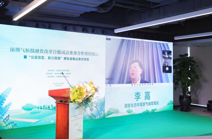 國家生態(tài)環(huán)境部氣候司司長李高,深圳市政府副秘書長劉昂,深圳市生態(tài)環(huán)境局局長李水生,深圳市委改革辦副主任孫華明,福田區(qū)政府副區(qū)長朱江,華夏銀行總行黨委委員、營銷總監(jiān)、深圳分行黨委書記、行長陳傳龍等領導出席。深圳市政府、深圳市生態(tài)環(huán)境局、市委改革辦、中國人民銀行深圳市中心支行、福田區(qū)政府相關負責人、深圳市綠色企業(yè)代表、深圳市綠色相關行業(yè)協會代表、華夏銀行深圳分行相關單位代表等70余人參加活動。