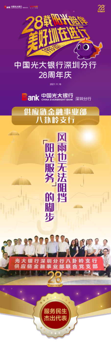供應鏈金融事業(yè)部與八卦嶺風雨無阻的“陽光服務”,是光大銀行深圳分行積極踐行總行“陽光服務”理念的縮影。