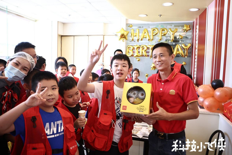 值得一提的是,成長(zhǎng)營(yíng)第二天還迎來(lái)了一位“小飛俠”的生日,在午飯間隙,孩子們一同在麥當(dāng)勞餐廳給這位小壽星唱起了生日歌,為他送上生日祝福。