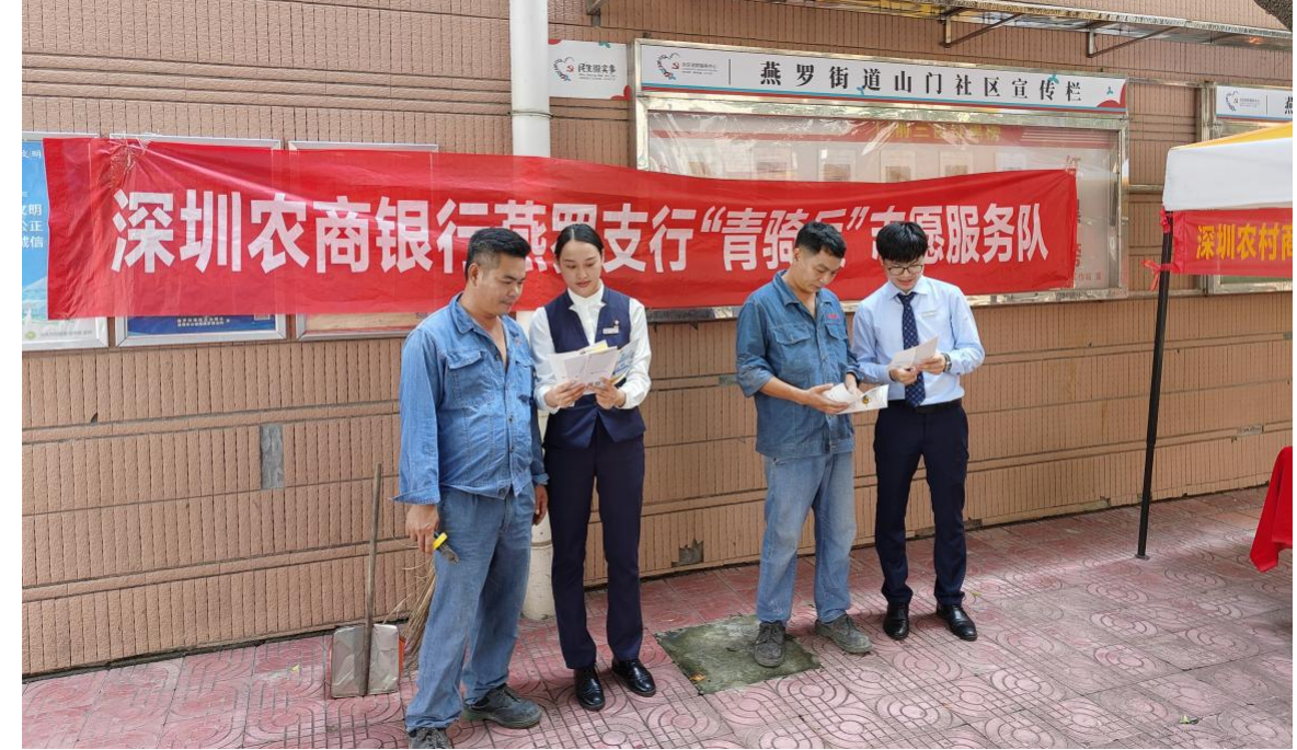 本次“青騎兵”志愿服務(wù)系列活動是深圳農(nóng)商銀行深耕普惠金融、踐行社會責(zé)任的一個側(cè)影。未來,深圳農(nóng)商銀行將繼續(xù)秉承“以客戶為中心”的服務(wù)理念,不斷豐富和完善“青騎兵”志愿服務(wù)的內(nèi)容與形式,以“青騎兵”志愿服務(wù)項目為橋梁,創(chuàng)新金融服務(wù)模式,致力于讓專業(yè)金融知識觸手可及、惠及萬家,讓金融服務(wù)成為連接人心、溫暖城市的堅實力量。(以上圖片由深圳農(nóng)商銀行提供 授權(quán)給深圳新聞網(wǎng)使用)