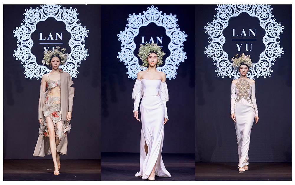 值得一提的是,LANYU品牌帶來了歷屆發(fā)布經(jīng)典系列中的代表作品,展出設(shè)計融合了蘇繡藝術(shù)的經(jīng)典手工技藝特色及現(xiàn)代時裝設(shè)計的新鮮潮流之美,綻放出了美輪美奐的視覺藝術(shù)效果,國風(fēng)文化與國際時尚撞了個滿懷,讓現(xiàn)場觀眾贊嘆不已。