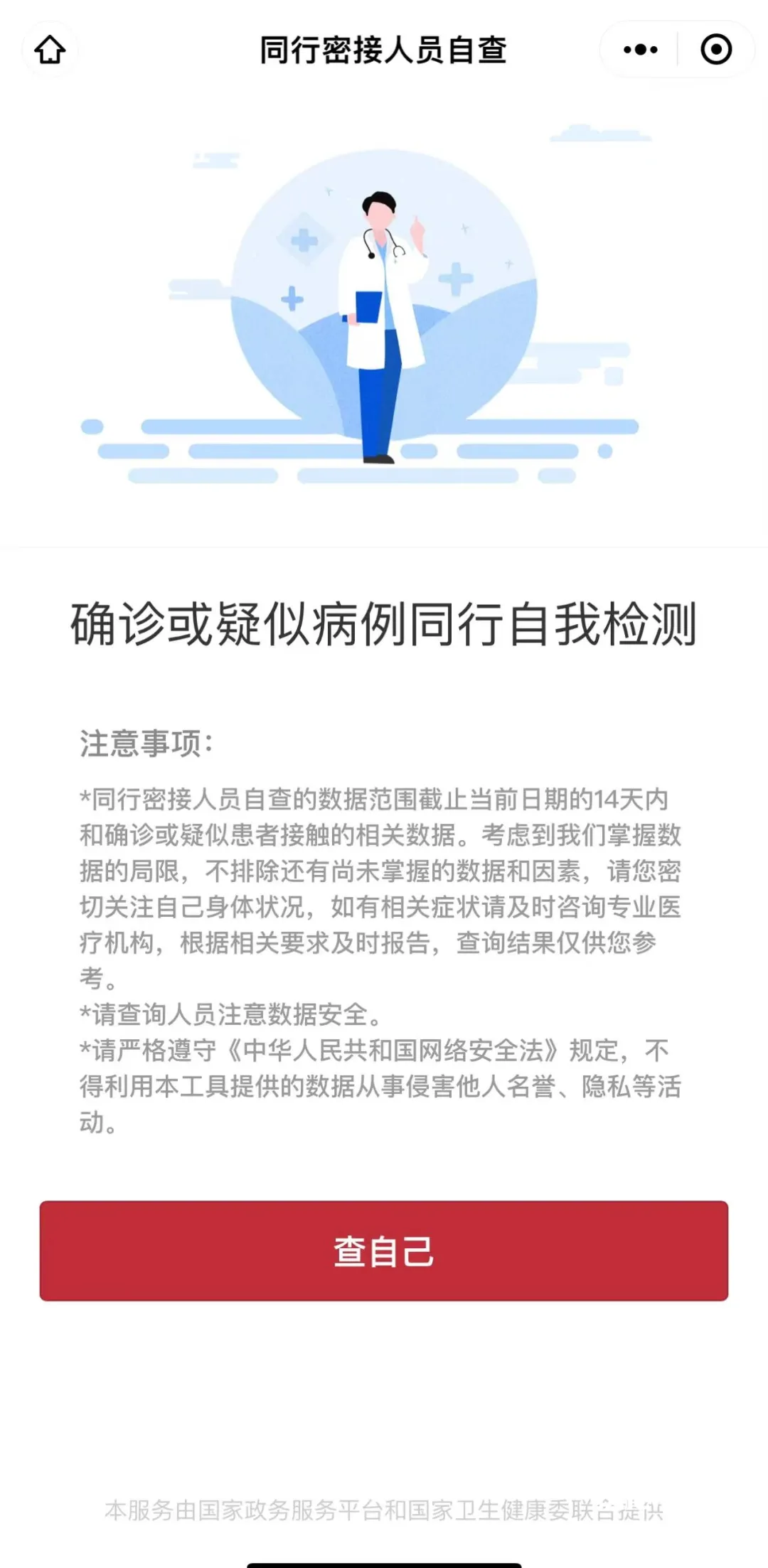 同行自查服務(wù)由國家政務(wù)服務(wù)平臺和衛(wèi)健委聯(lián)合提供,14天內(nèi)乘坐過飛機或者火車等公共交通工具出行的市民可掃描下方二維碼進(jìn)行查詢。