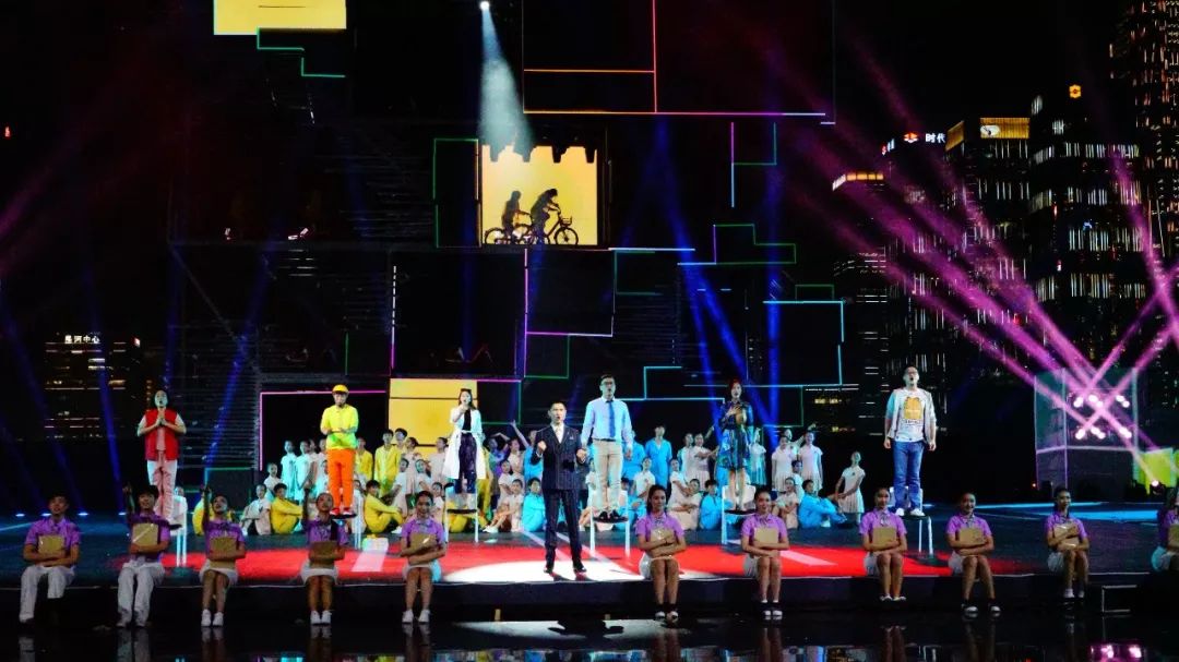 主題曲《新的一天》整首歌以小見大,用年輕上班族的拼搏精神體現(xiàn)深圳人共性,引領時代進步潮流?!? 拒絕空想冒險/誰不渴望明天/有夢就要實現(xiàn) ”,交織的夢想成就了深圳?!? 新的一天就在眼前/我的命運我要自己改變 ”,改革開放賦予了這個時代勇敢堅持的精神。為了排演這個節(jié)目,導演卓依·馬可尼利和全體演員歷經了一個月的排練,克服了演出場地露天的高溫,在整個節(jié)目近五分鐘的時長里,展現(xiàn)了新時代青年對于工作的拼勁與堅韌、活力和激情,彰顯了剛柔相濟、自強不息的深圳精神。