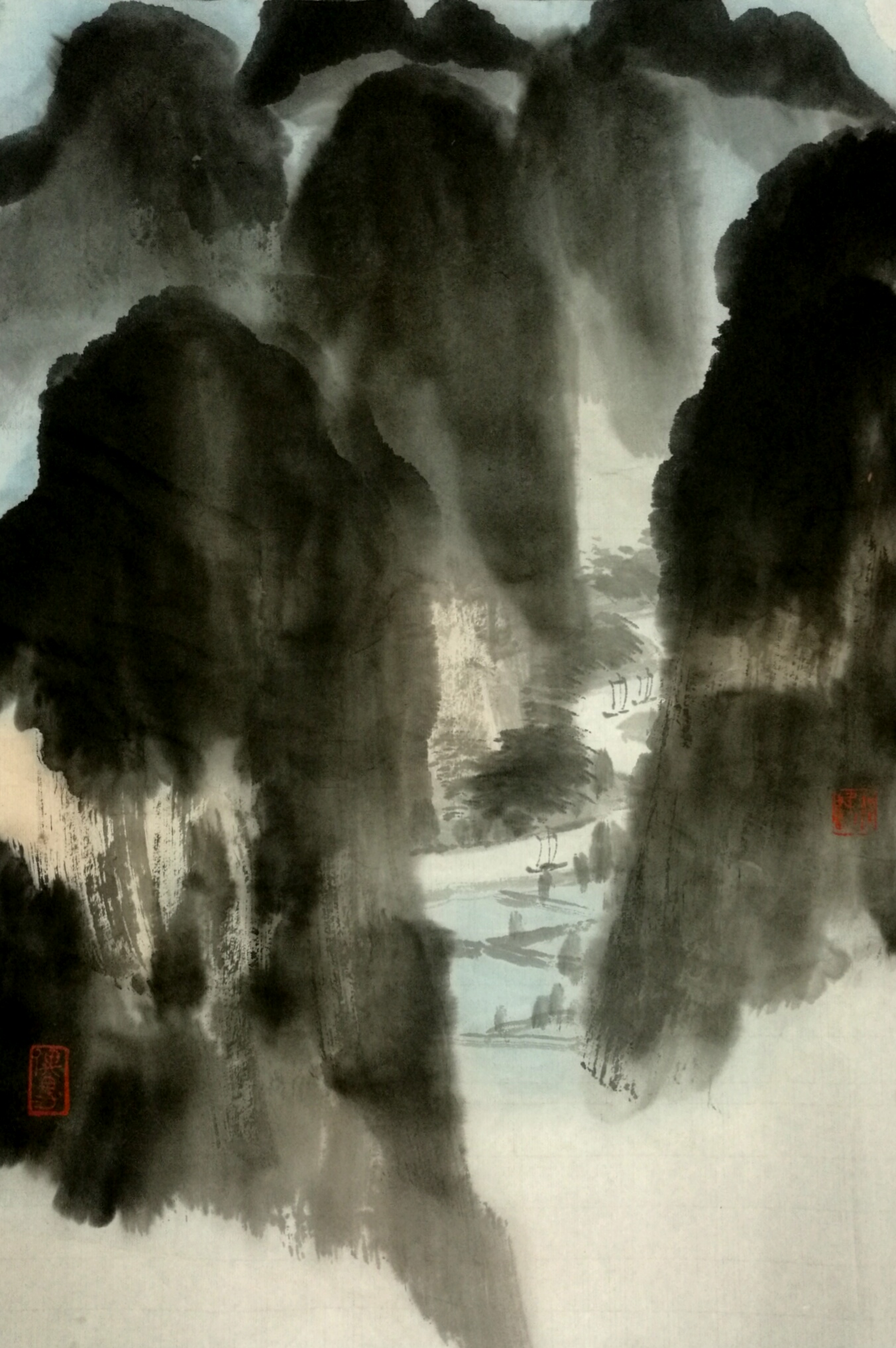 其實,吳琳兄是一位才華全面的畫家,不獨山水流芳,人物花鳥亦強。見過他的巨幅山水,意境古拙開張不輸前賢;見過他的花鳥魚蟲,似有白石之風吹過;見過他的白描觀音,覺大千風骨猶在?!白哌^的路,終成前行的寶鑒”!看過吳琳的來路,今番小山水“來襲”,似為意料之中的事。