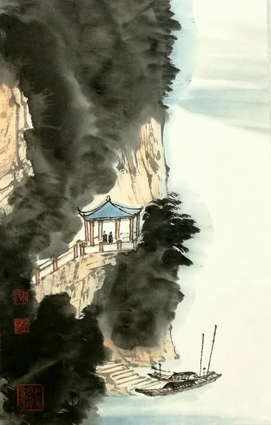 智者說,人生有三重境界:第一重,看山是山,看水是水;第二重,看山不是山,看水不是水;第三重,看山又是山,看水又是水。吳琳初以寫實為主,時常云游四方、畫稿盈笈,得意妙筆不絕如縷;繼而參以己意,畫風微變,花鳥魚蟲在造境中盛開、飛翔、游嬉,精品力作吸 人眼眸;今番小山水,神來之筆頻頻,寫實乎?寫意乎?寫心也!或許,是吳琳的畫境暗合了人生三境吧。竊以為,寫實是一眼之境;寫意是一時之念;寫心乃一生之魂?;蛟S,已過天命的吳琳兄,欲拋脫生活之牢籠,直抵生命的本真,心生禪意,境界便升至新的維度。如此,畫境安在?自然隨心,有心則為之,無心則諉之。老子言“無為而無不為”,蘇軾言“無意于佳乃佳”,想必隨心之境可助吳琳兄“一臂之力”,畫境、藝境自可更上層樓。