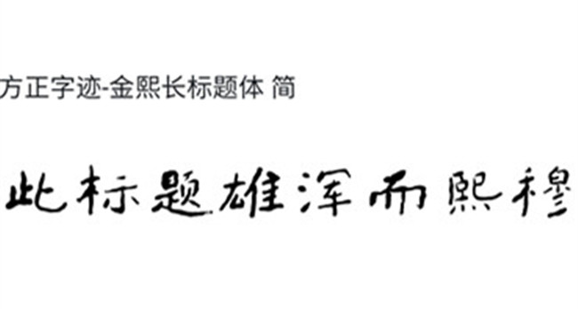 金熙長(zhǎng)先生曾在深圳圖書(shū)館工作十多年,一直致力于中華傳統(tǒng)文化的修習(xí),于古琴、古音韻、古詩(shī)詞、古曲及道教科儀與音樂(lè)等方面用功亦勤,又以《中國(guó)文字學(xué)》、《平面設(shè)計(jì)》、《藝術(shù)美學(xué)》等相關(guān)交叉與邊緣學(xué)科為創(chuàng)作依據(jù),故他可以真陽(yáng)書(shū)風(fēng)寫(xiě)仙家書(shū)法、以沖和靜穆書(shū)風(fēng)寫(xiě)佛教經(jīng)典…此外,具有著極大量書(shū)法的千錘百煉的同時(shí),金熙長(zhǎng)先生更具有著豐富的為商號(hào)題寫(xiě)招牌的經(jīng)驗(yàn),所以深諳作為新一代標(biāo)題體,一篇題目,一個(gè)招牌中,如果每個(gè)字都用厚重的寫(xiě)法放在一行往往會(huì)呆板,反之,又會(huì)浮躁輕飄。故本字體中,以厚重端莊而又突出“高古與風(fēng)骨“的北碑書(shū)風(fēng)為主調(diào),間隔一些活力四射的,突出“風(fēng)華”的晉帖寫(xiě)法。《方正字跡-金熙長(zhǎng)標(biāo)題體》整體看上去動(dòng)中有靜,雄渾中有飄逸,極具文化內(nèi)涵,未來(lái),在廣告、產(chǎn)品包裝、招牌等廣泛應(yīng)用場(chǎng)景中均可實(shí)現(xiàn)出眾的、極好的視覺(jué)效果。