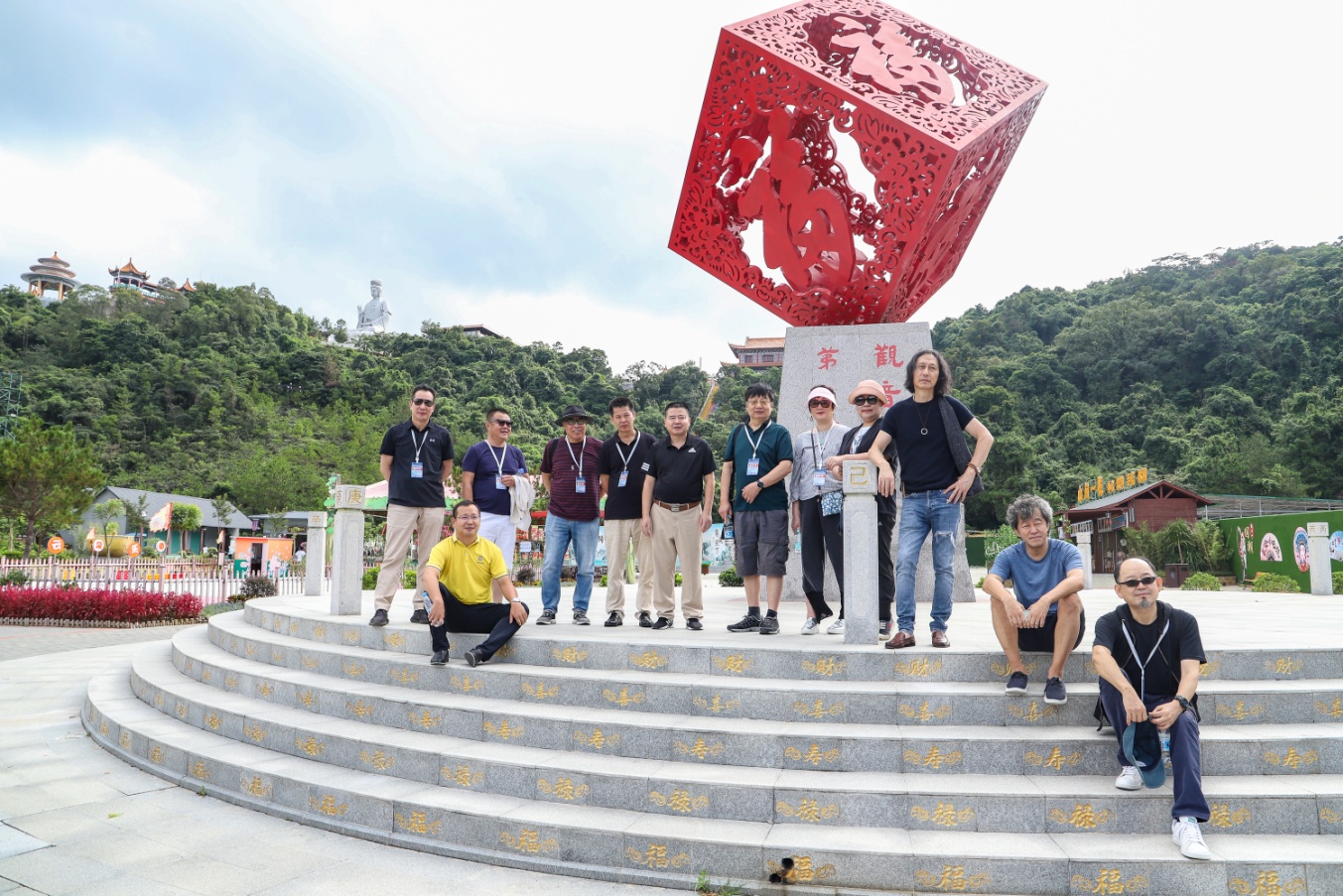 福緣景點匯聚的感恩廣場!寓意著“紅”福齊天的第一福,矗立于青山之間,采風團表示,觀音山是福山,聽說其他文人墨客來了觀音山許愿,回去后都能在文學或工作上更上一層樓,此次前來,他們也要為自己許下心愿!