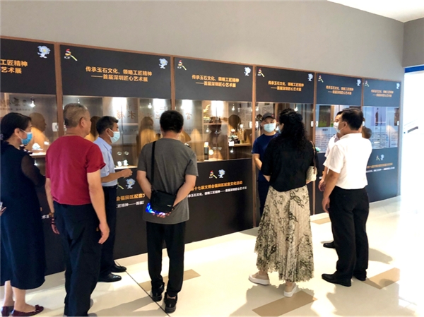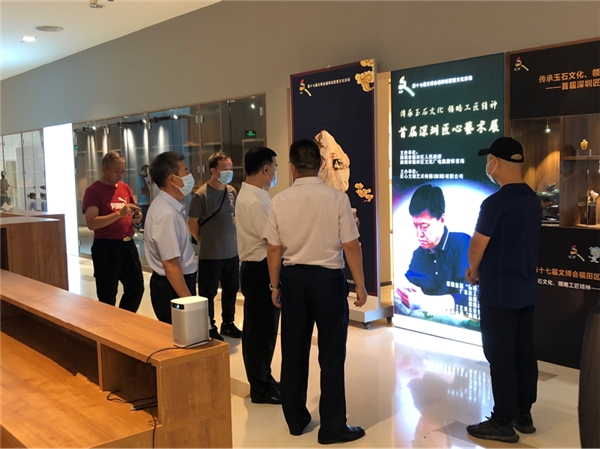 活動(dòng)開(kāi)展期間,深圳市民協(xié)專職副主席張晉文、深圳市文創(chuàng)體社會(huì)組織黨委第一書(shū)記、深圳市群眾文化學(xué)會(huì)會(huì)長(zhǎng)楊素賢、深圳市深港文藝家交流協(xié)會(huì)主席、福田區(qū)文化議員王廉運(yùn)等多位嘉賓參觀了匠心藝術(shù)展,陳宗藝現(xiàn)場(chǎng)介紹了玉雕作品,中國(guó)工藝美術(shù)大師錢高潮、中國(guó)工藝美術(shù)大師裴永中等也前來(lái)參觀交流。