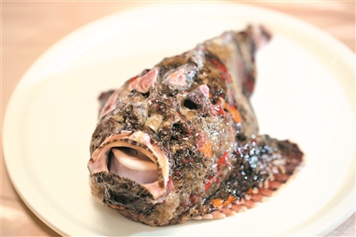 番禺九號私廚有一種奇丑無比的魚,它生活在海底60米之下,興起之時游走于珊瑚之間,懶起來一動不動,潛水之人常常將其誤認為是石頭,所以稱它為石頭魚。石頭魚渾身長刺且有毒,廚師只取其肉,棄用魚皮。它自古被視為魚中珍品,因魚肉鮮嫩,據(jù)《本草綱目》記載石頭魚能夠治療筋骨痛,有溫中補虛功效。