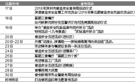深圳市2018年食品安全宣傳周全市層面活動(dòng)安排表