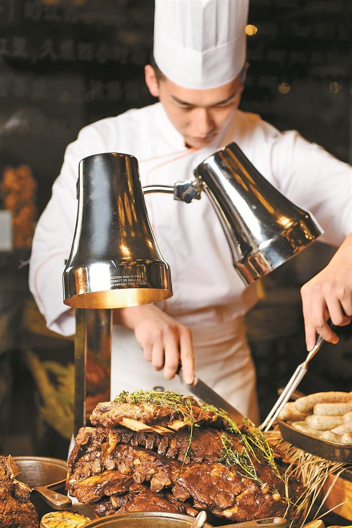 周五至周日則是熱情的“燃”主題自助晚餐。沙威瑪烤肉、T骨牛扒、意式烤豬肉卷、德國香腸以及德國堿水面包,酒店主廚做了最簡單的處理,將肉質(zhì)最鮮美的味道保留下來,再以520華攝氏度將美味繼續(xù)升溫。鮮咖啡餐廳位于酒店一層,環(huán)境優(yōu)雅舒適,全天候開放,供應(yīng)各式散點(diǎn)菜品和自助餐,設(shè)有開發(fā)式廚房,廚師當(dāng)場展示廚藝,炮制環(huán)球特色佳肴。(張璇)