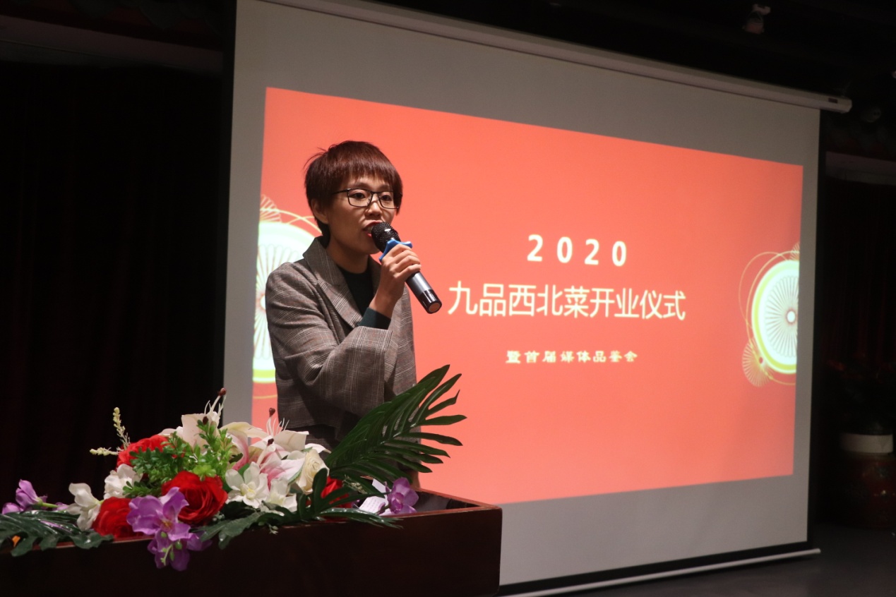 本屆媒體品鑒會由“九品西北菜”創(chuàng)始人兼出品總監(jiān)賈淑萍女士歡迎致辭,并且分享了關(guān)于品牌創(chuàng)始背后的故事?!熬牌肺鞅辈恕笔莾A金河建材集團(tuán)之力,萃取20多年用心精華,嚴(yán)格把控菜品供應(yīng)鏈,歷史20年,打造出來的新品牌。