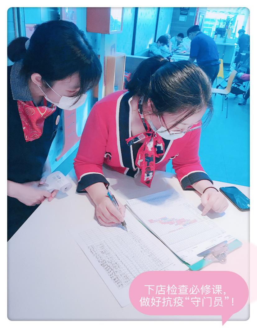 所以,每日的下店檢查是蔡麗麗工作必不可少的一個(gè)環(huán)節(jié)。下店檢查時(shí)看到的問題,會(huì)及時(shí)提出和校準(zhǔn)。確保轄區(qū)所有餐廳可以無偏差的嚴(yán)格執(zhí)行公司的防疫措施。這時(shí)的“快”和“嚴(yán)”就是“生死時(shí)速”。因?yàn)?,餐廳任何的清潔消毒不到位,都有可能導(dǎo)致員工病毒感染。