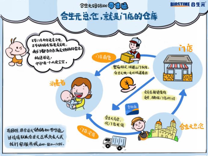 顧客因道路封閉等原因在老家,需要奶粉,和原來常住地的母嬰門店老板下單。如果原來母嬰門店無法寄送產(chǎn)品到異地的消費(fèi)者,母嬰門店老板把需求報(bào)給合生元媽媽100零售通,合生元從自己的總倉出貨快遞,利潤還計(jì)入原來門店的賬上。