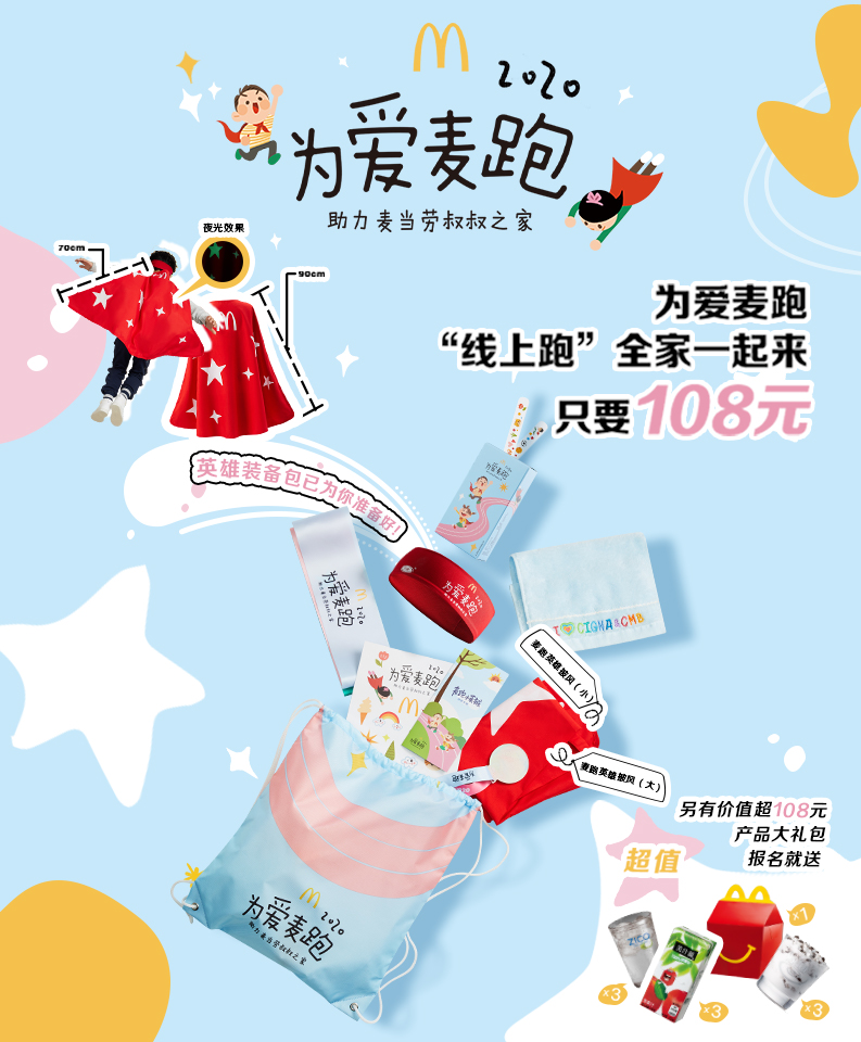 報名“為愛麥跑”即享超值裝備包以及價值超百元的麥當勞產品電子兌換券