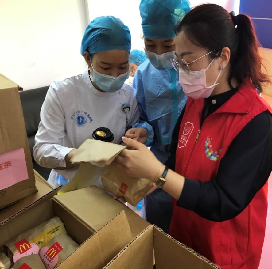 深圳麥當(dāng)勞“麥麥義工團(tuán)”小伙伴們?yōu)榭挂咭痪€醫(yī)護(hù)人員送去愛心餐食